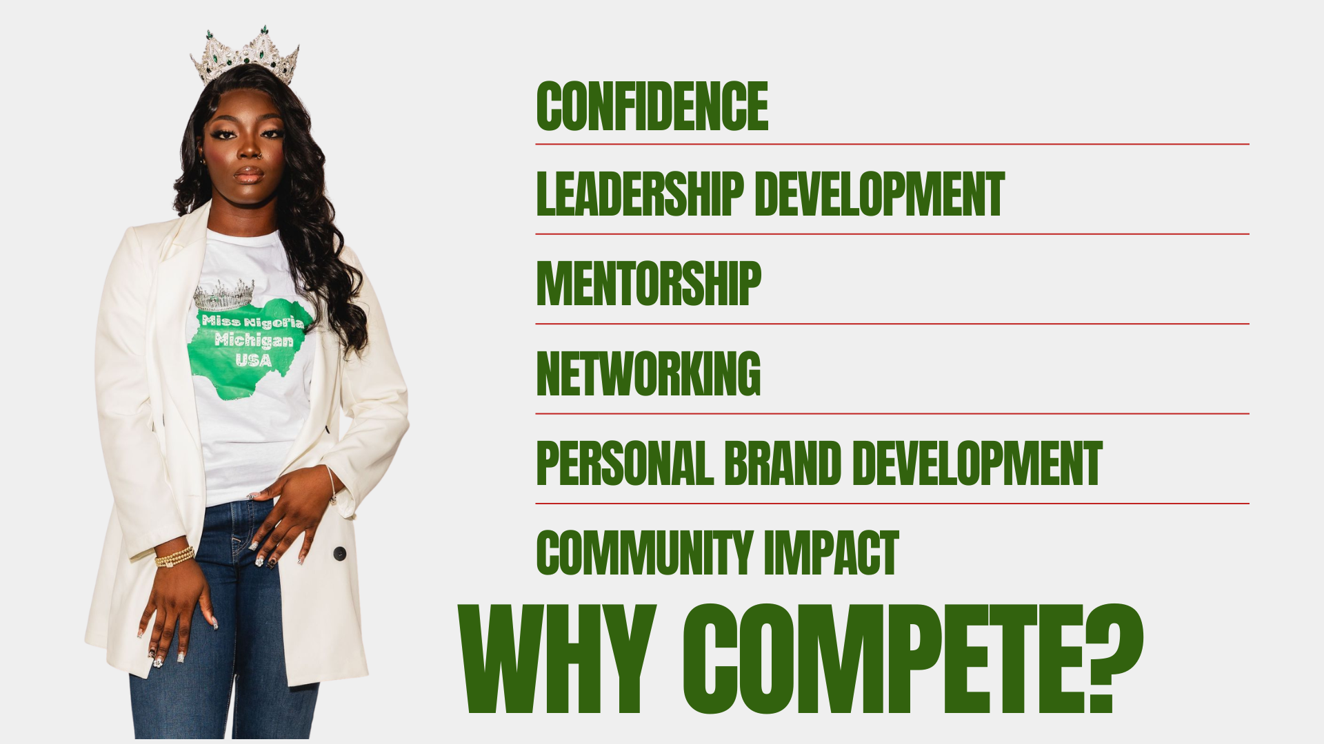 Becoming a contestant in Miss Nigeria Michigan USA is more than stepping on stage—it is entering a transformational leadership journey designed to elevate your confidence, voice, and impact.